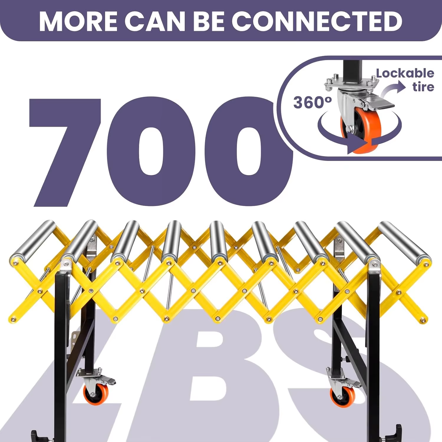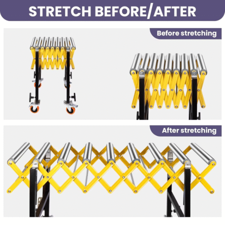 Extensibility and Foldable: The roller conveyor extends from 23.6 to 52 inch, makes easy to store conveyor belt when space is limited, expands and collapses roller stand simply and smoothly, very practical for home or woodworking studio