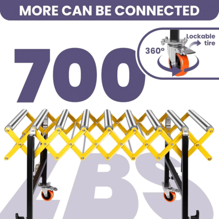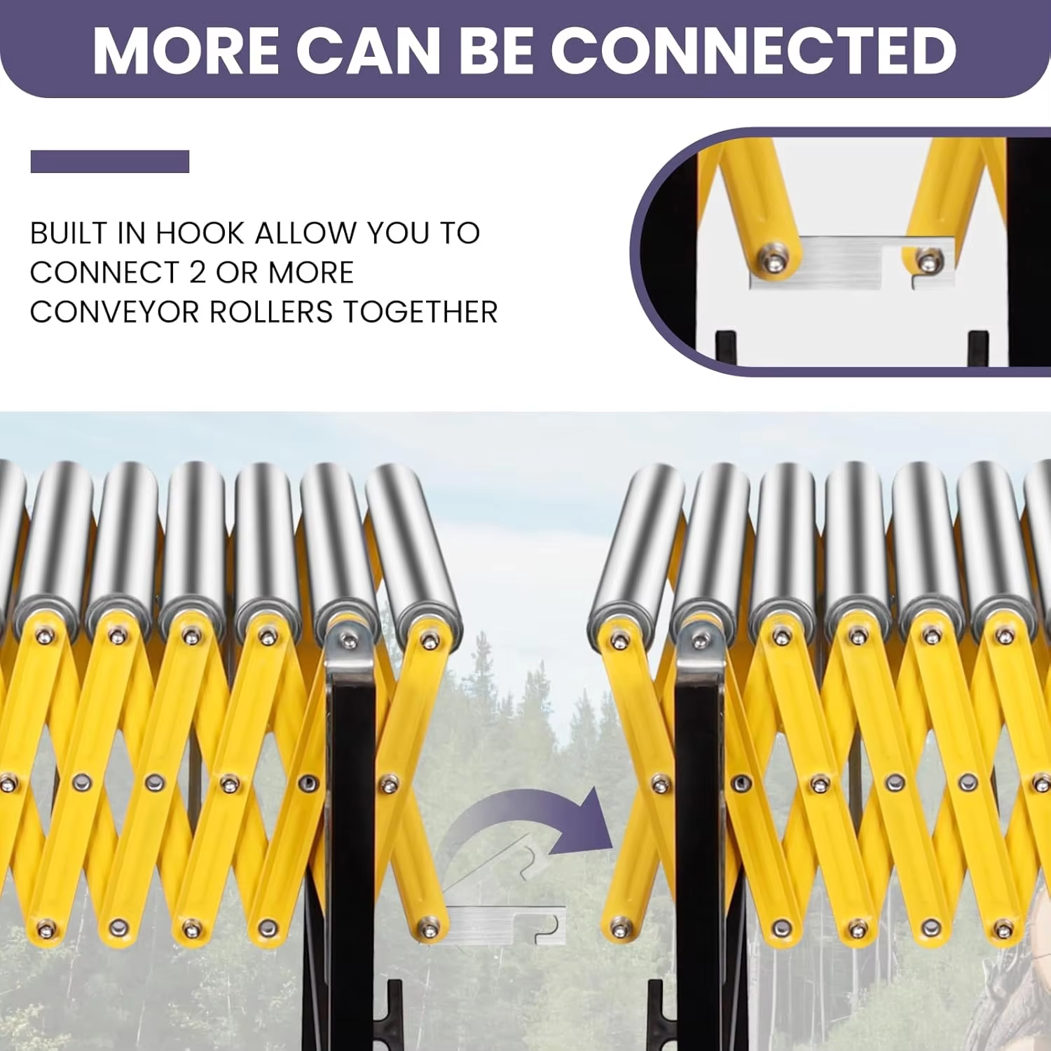 Build-in hooks connect 2 or more conveyor rollers together, giving you virtually unlimited moving options, and you can move the materials throughout the whole workshop!