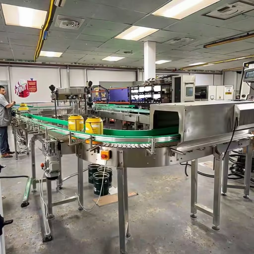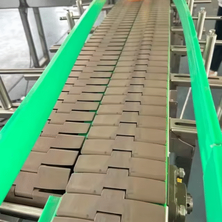 Цепной пластинчатый конвейер использует стандартную цепь с плоским верхом в качестве несущей поверхности и мотор-редуктор в качестве передачи энергии. Он движется по специальной направляющей. Поверхность транспортировки плоская и гладкая, а сила трения мала. Материалы плавно перемещаются между линиями транспортировки. В соответствии с различными технологическими процессами линия цепной пластины делится на прямую и поворотную, а материалы делятся на термопластичную сталь и нержавеющую сталь. Она подходит для транспортировки пластиковых бутылок, стеклянных бутылок, банок и других упаковочных материалов, но также может транспортировать картонные коробки, пакеты упаковочных продуктов, мы можем сделать многорядную, таким образом, что поверхность транспортировки широкая и разница в скорости формируется так, что множество рядов становятся одним рядом без экструзии, один ряд может также стать множеством рядов и медленно перемещаться, чтобы реализовать хранение материалов в процессе транспортировки.